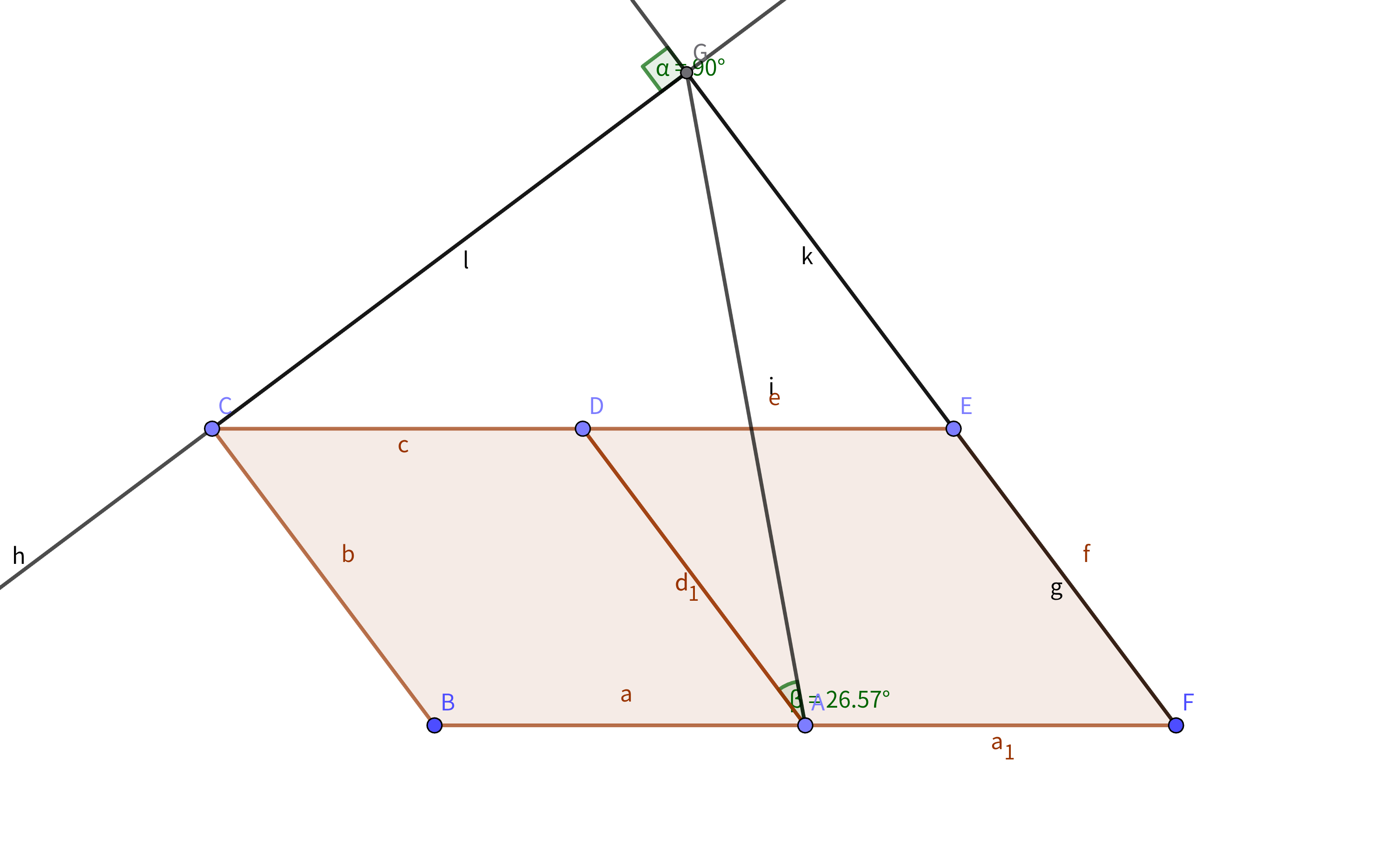 ・ある2点と交わらない直線から成す角30度の平行四辺形を作図する場合